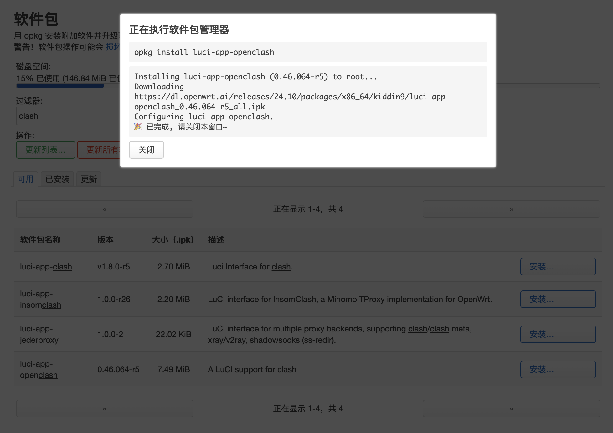 通过本教程,您已完成以下内容: 1. 下载并安装 OpenClash。 2. 导入代理订阅或本地配置文件。 3. 启用系统代理并测试连接。